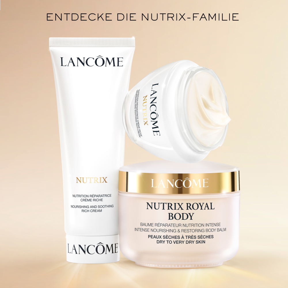 Die original Nutrix Creme mit verbesserter Formel! Seit 1936 wird die reparierende Nutrix Feuchtigkeitscreme von Lancôme von Frauen geliebt und geschätzt – und das nicht ohne Grund: Die Nutrix Gesichtscreme verleiht der Gesichtshaut ein gesundes und strahlendes Aussehen. Die Pflege für trockene und empfindliche Haut hydratisiert die Haut, sodass ein weiches und geschmeidiges Hautgefühl entsteht. Die in der Lancôme Nutrix Gesichtscreme enthaltenen Inhaltsstoffe besitzen zum einen eine antioxidative Wirkung, um die Haut vor freien Radikalen zu schützen und sie gegen schädliche Einflüsse zu stärken. Der Teint wirkt dank der reichhaltigen Gesichtscreme langfristig strahlender und ebenmäßiger.
