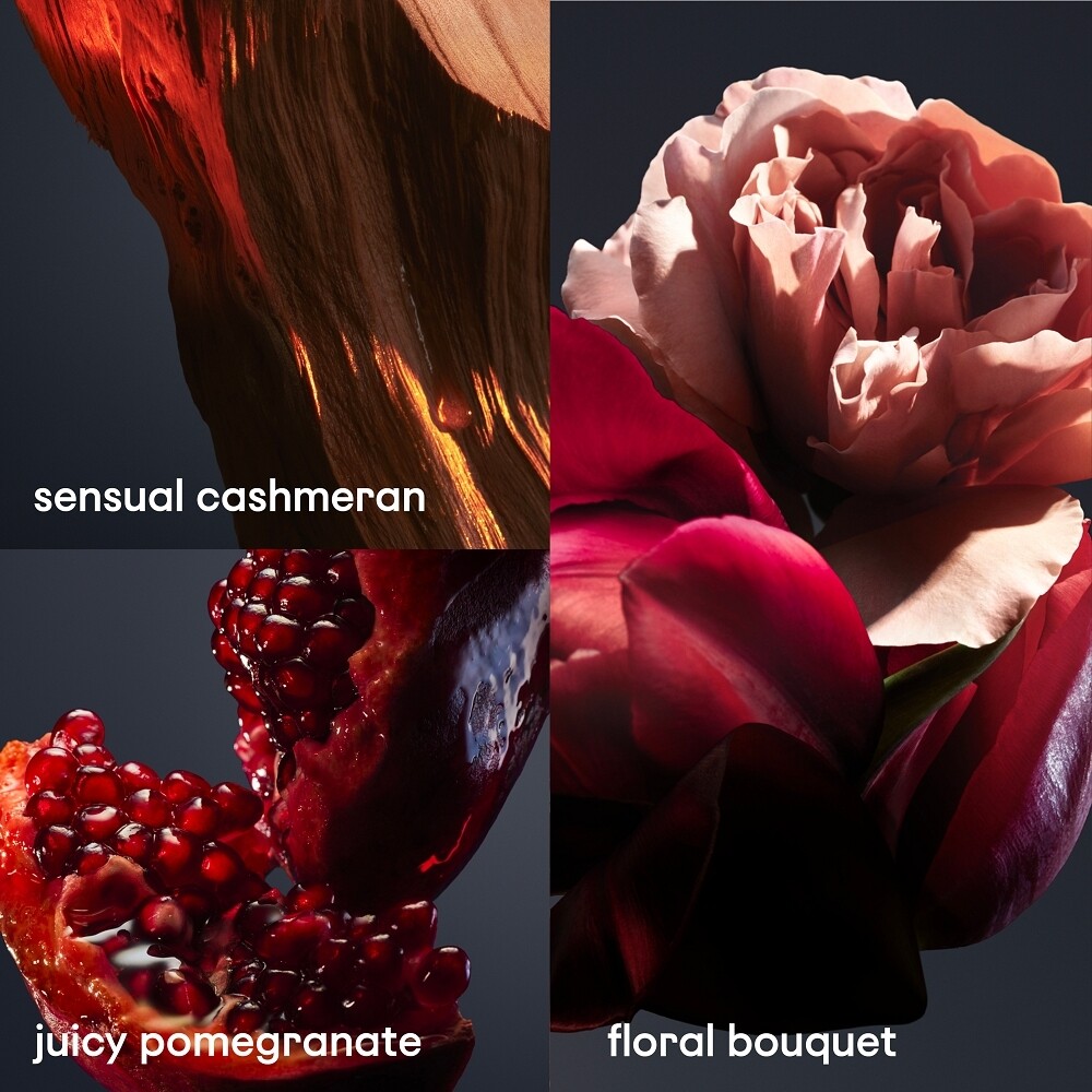 Verliebe Dich in den Duft von saftigem Granatapfel, der sich mit einem unwiderstehlichen Blumenbouquet und einer einzigartigen Basis aus Kaschmir vereint. Eine Kombination, die so sinnlich ist, dass sie Deine verführerischste Seite enthüllt.